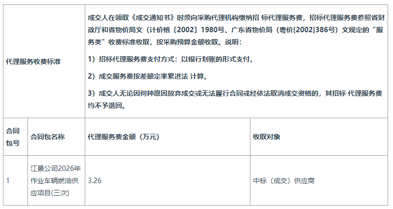 - 江景公司2026年作业车辆燃油供应项目(三次)结果公告
