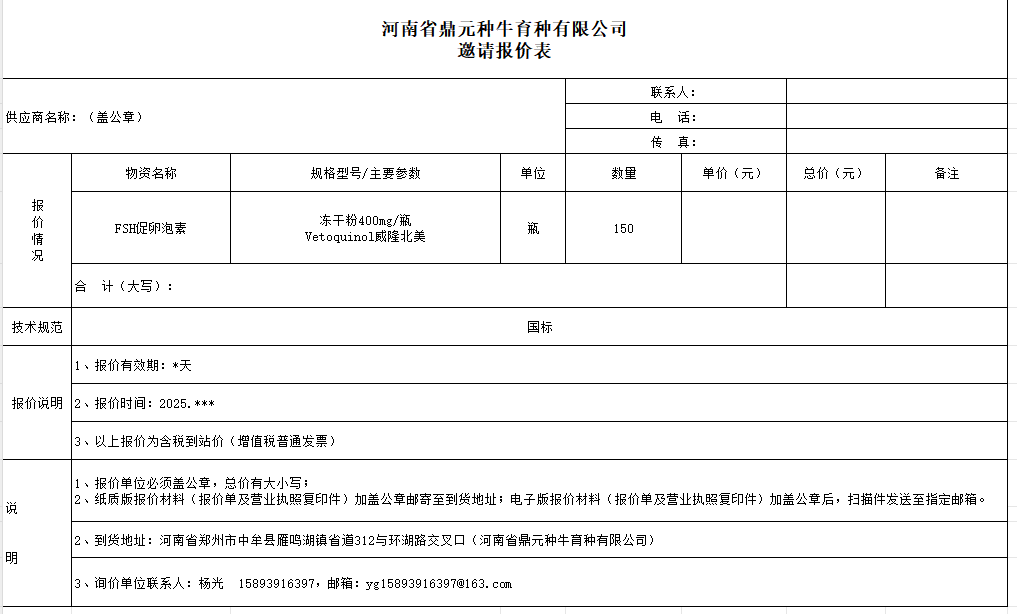 中策大数据首页 招标公告 河南省鼎元种牛育种有限公司FSH促卵泡素采购项目询比采购公告