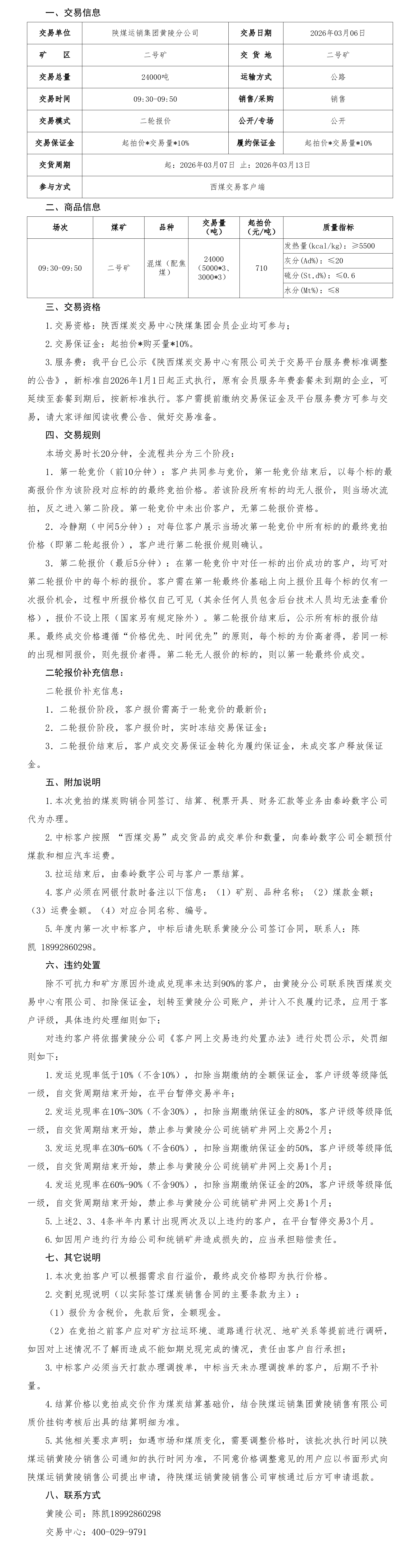 中策大数据首页 招标公告 3月6日陕煤运销集团黄陵分公司交易公告